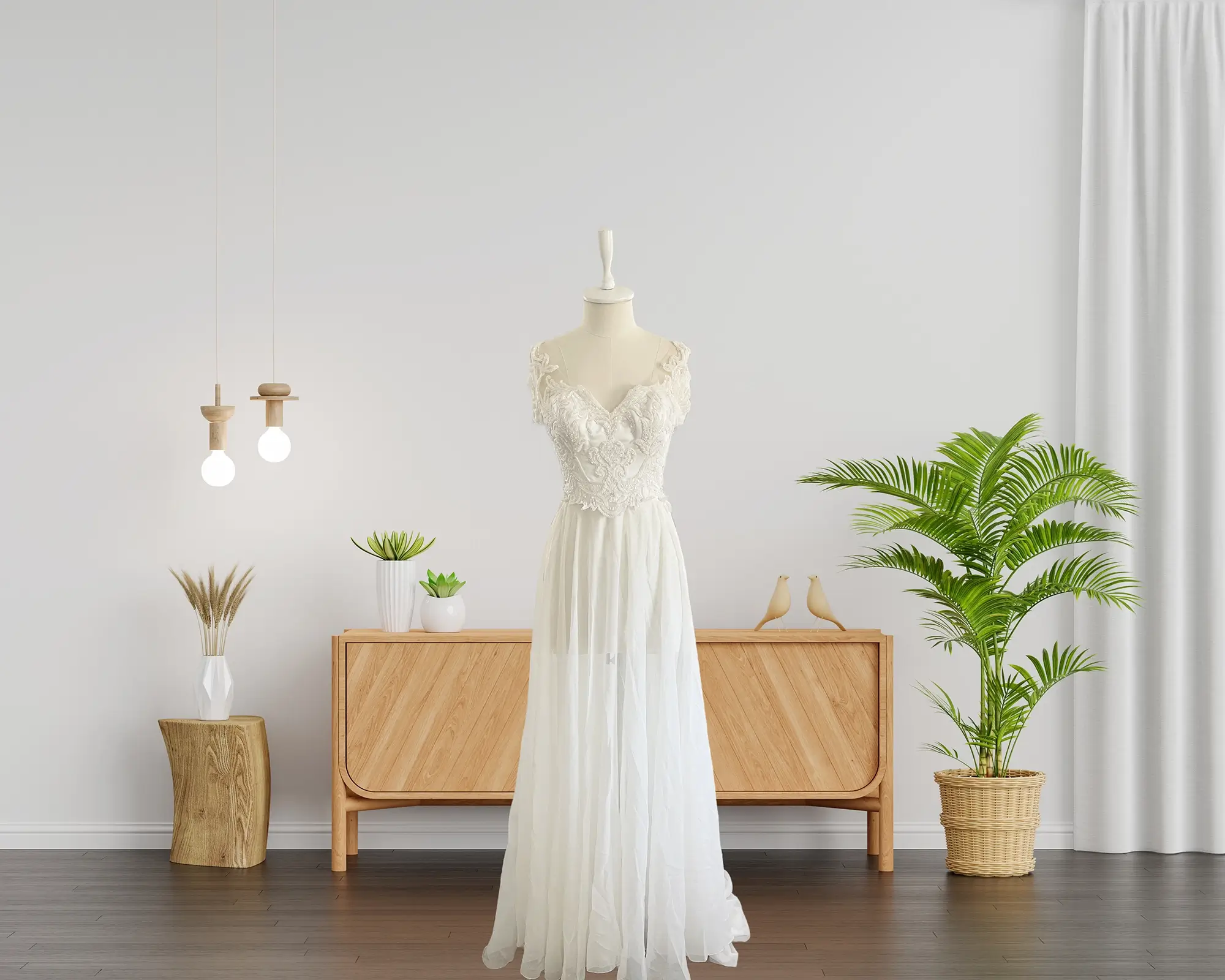 This custom design wedding dress is a true masterpiece, with intricate details and elegant design elements that are sure to make you feel like a true princess on your special day. The dress features a beautiful lace bodice that is hand-embroidered with delicate beads and pearls, adding a touch of luxury and glamour to the overall design. The chiffon straight skirt is light and flowing, creating a flattering silhouette that will make you look and feel your best. The dress is completely handcrafted, with every stitch and detail lovingly executed by our skilled artisans. Whether you’re getting married in a grand ballroom or saying your vows in a rustic outdoor setting, this stunning wedding dress is the perfect choice for any bride who wants to feel beautiful and confident on her wedding day. With its timeless style and exquisite craftsmanship, this dress is a true work of art that you’ll cherish for years to come.