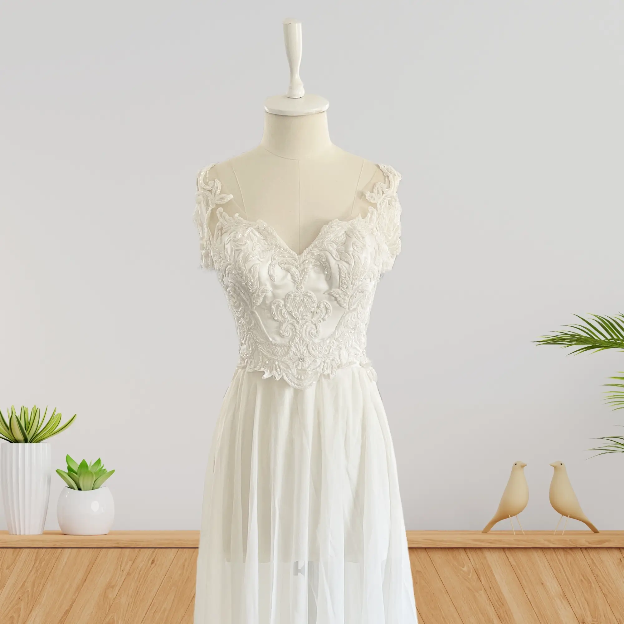Special Design Wedding Gown with Elegant Lace Bodice and Light Chiffon Skirt (Wedding Dress / Bridal)
